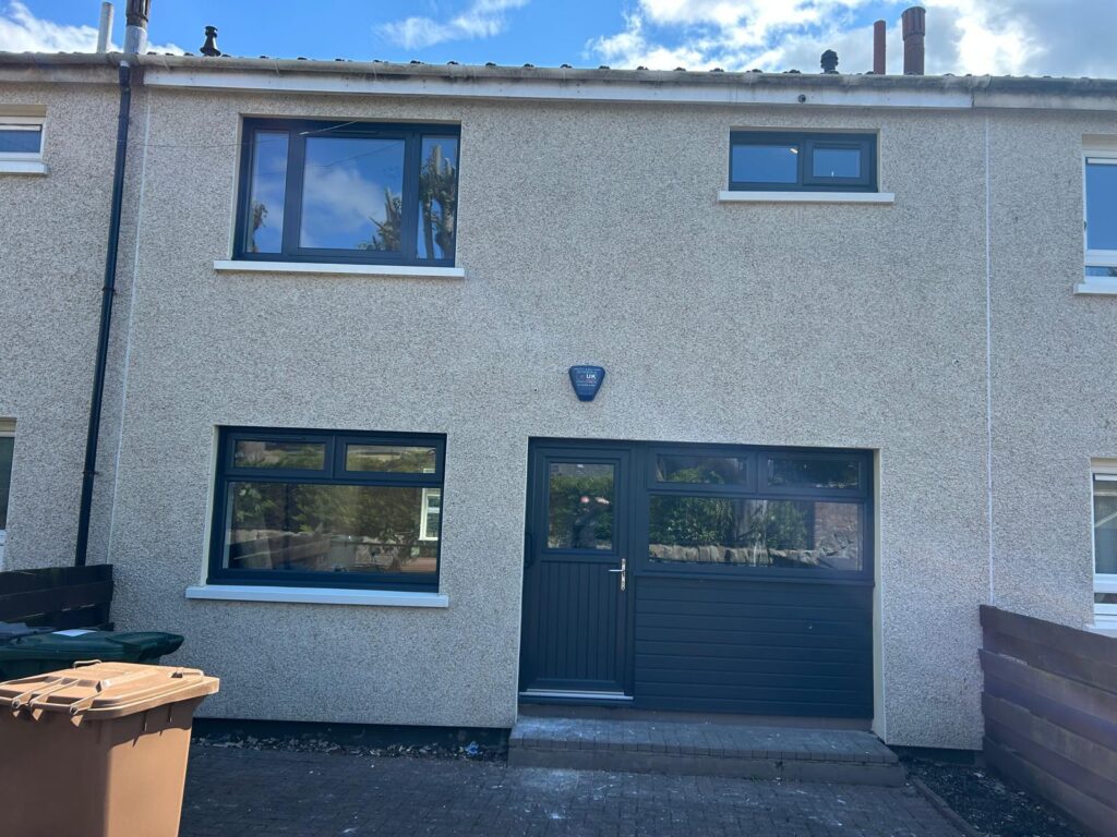 • Door Upgrade: A dark grey composite door chosen for strength, low maintenance, and sleek appearance.